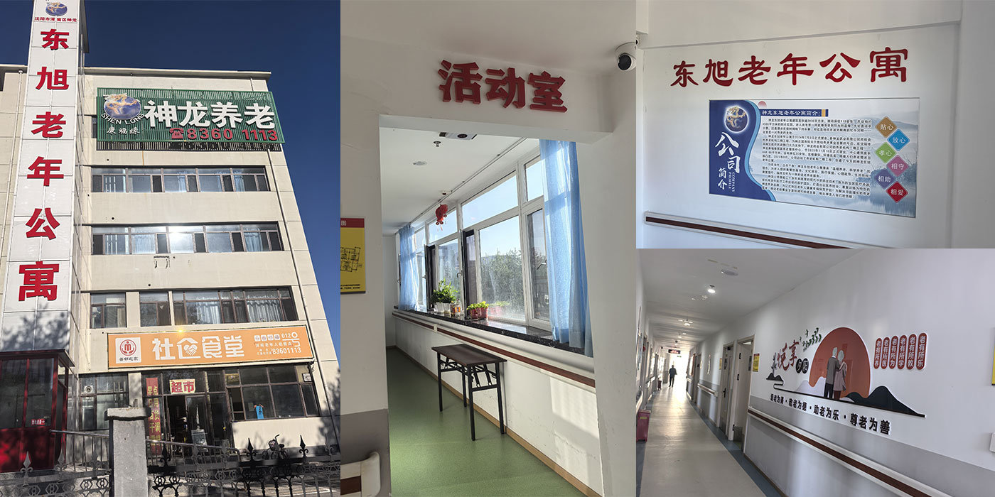 沈阳市浑南区神龙东旭老年公寓是由沈阳神龙药业有限公司为响应《辽宁省人民政府办公厅关于全面开展养老服务市场提升养老服务质量的实施意见》的号召,在第一期项目沈阳市浑南区神龙康福缘居家养老服务中心之后开展的第二期养老健康事业项目。于2024年7月沈阳神龙药业有限公司在原有居家式养老中心之上,花费数百万元投资兴建了一个按照最新养老服务标准符合当代老年人养老需求的,能提供住宿服务、餐饮、文化娱乐活动、医疗保健、康复理疗、心理辅导、生活照料、紧急救援、临终关怀等服务项目的综合性医养、康养结合式、综合性养老、助老服务机构。
